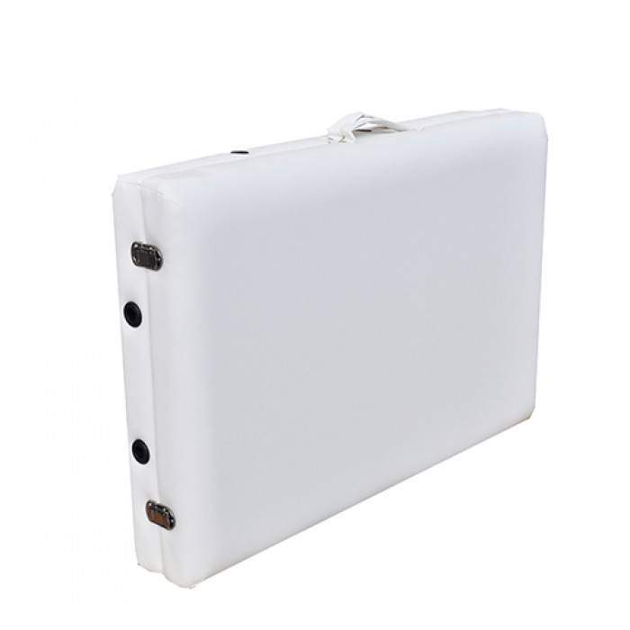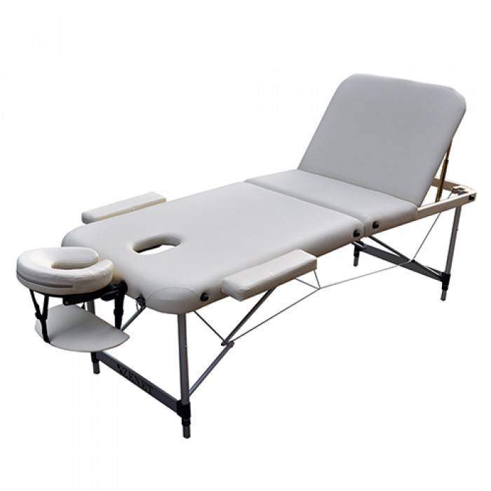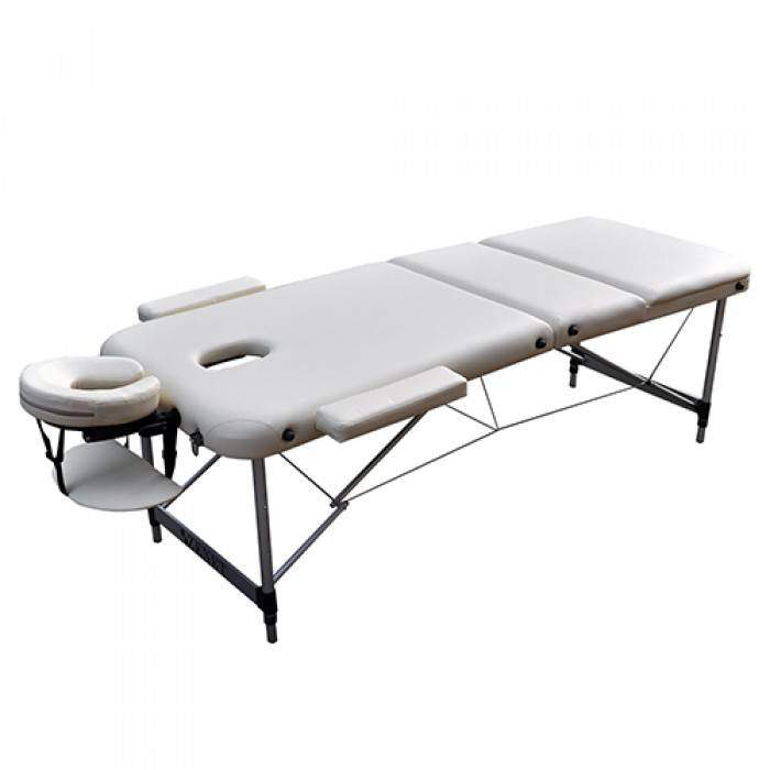 Основа стола стойка, выполненная из алюминия, покрытая защитным влагостойким средством. Массажный стол выдерживает нагрузку до 250кг. Трехсекционное конструкцию удерживают ножки, которые также выполнены из высококачественного алюминия.